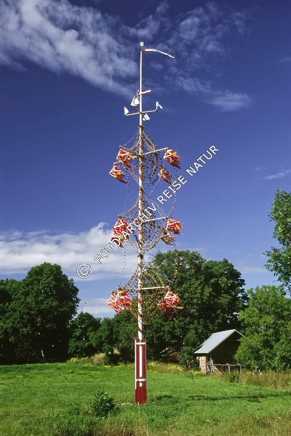Keywords: Baum, Brauchtum, Tradition, Finnland, Finström, Flora, Kultur, Kulturlandschaft, Mittsommerstange, Pålsböle, Rasen, Wiese, Åland,