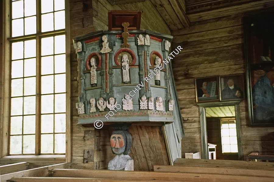 Keywords: Bauwerk, Finnland, Gebäude, Holzkirche, Holzskulptur, Kanzel, Kirche, Kirchenkanzel, Kultur, Kunst, Ort, Petäjävesi, Sakralbau, Skulptur, Westfinnland,