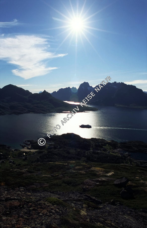 Sicht vom Digermulkollen auf ein Hurtigrutenschiff bei der Einfahrt in den Ulvågsund2006_08_09__0143_SL