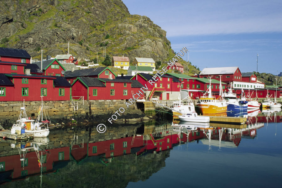Keywords: Bauwerk, Fischereihafen, Fischerhütte, Fjord, Gebäude, Gewässer, Hafen, Hütte, Landschaft, Lofoten, Nordland, Norwegen, Rorbu, Stamsund, Vestfjorden, Vestvågøy,