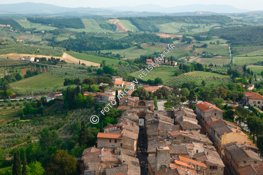 Keywords: Altstadt, Bauwerk, Feld, Gasse, Italien, Kulturlandschaft, San Gimignano, Stadt, Straße, Toskana, Verkehrsweg,