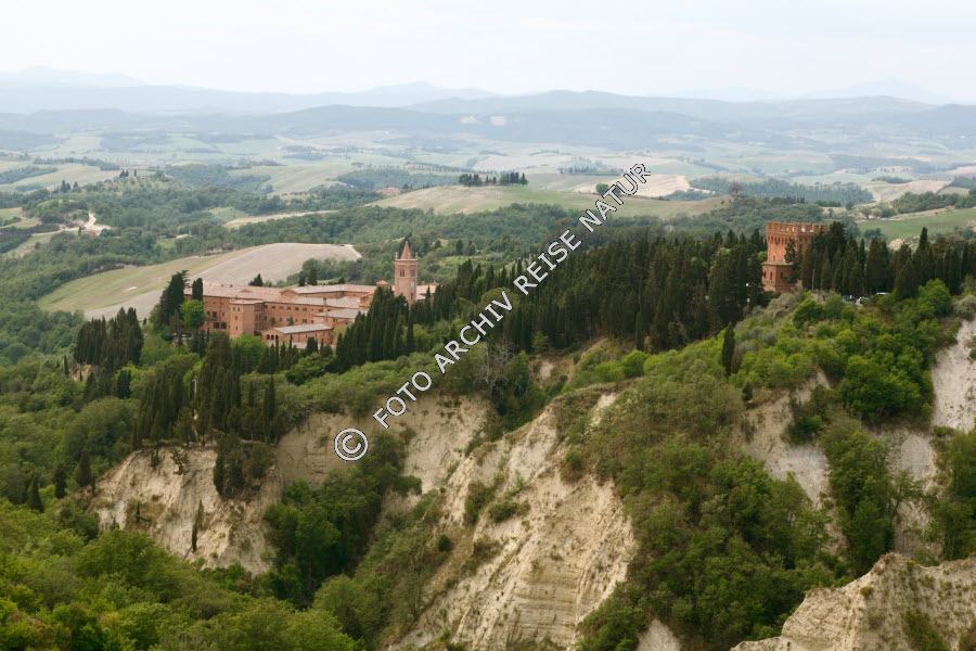 Keywords: Abtei, Kloster, Bauwerk, Crete, Gebäude, Hügel, Hügelland, Italien, Landschaft, Monte Oliveto, Sakralbau, Toskana,