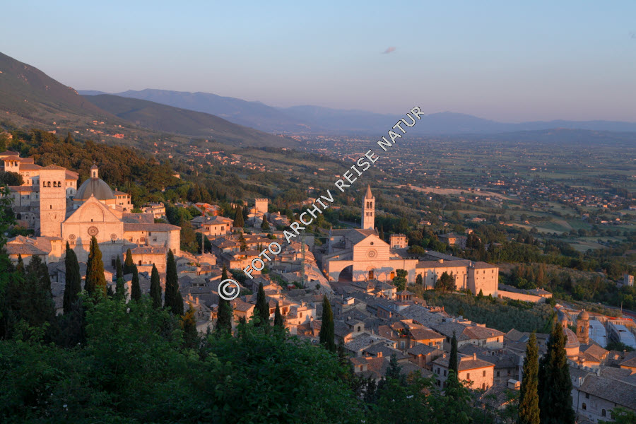 Assisi im Abenglicht. Blick vom Rocca Maggiore