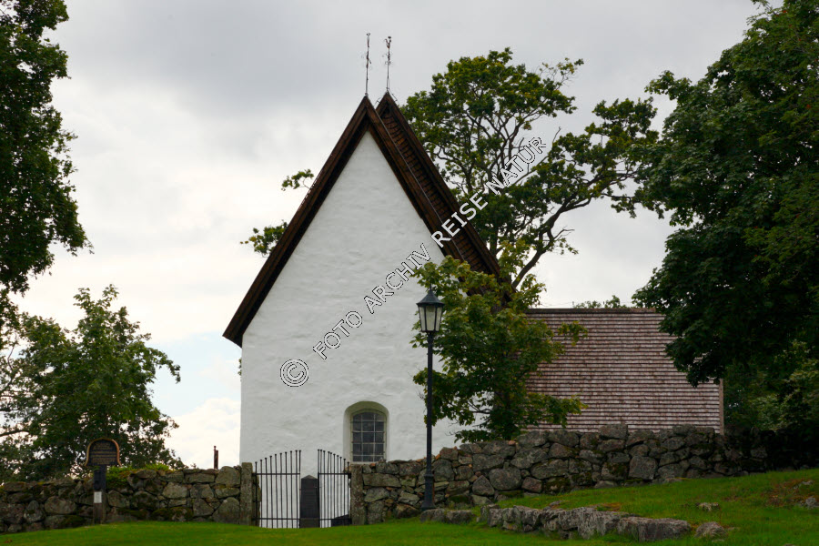 Mittelalterliche Stein- und Holzkirche in Jät am See Åsnen