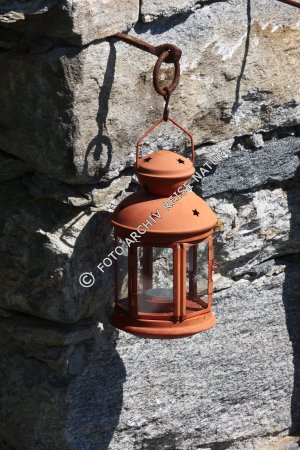 Keywords: Alpe Cordonico, Bauwerk, Gegenstand, Granitmauer, Kerzenlaterne, Laterne, Leuchtmittel, Mauer, Natursteinmauer, Schweiz, Tessin,
