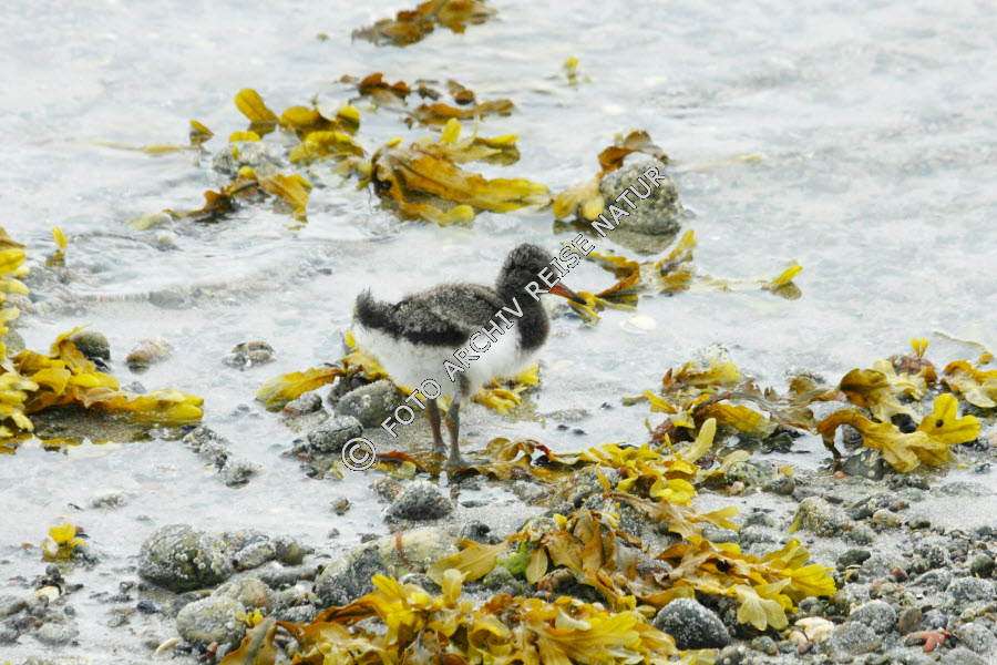 Algen, Austernfischer, Haematopus ostralegus, Blasentang, Fucus vesiculosus, Fauna, Fjord, Flora, Gewässer, Grunnførfjorden, Landschaft, Seetang, Vogel, Watvogel,