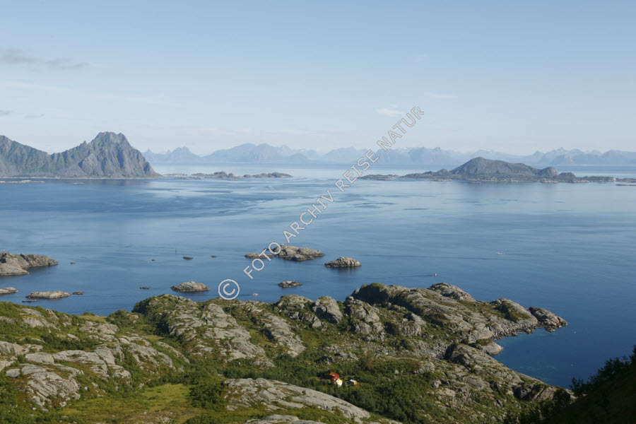 Austvågøya, Berg, Felsen, Fjord, Gewässer, Insel, Landschaft, Litlmolla, Lofoten, Material, Nordland, Norwegen, Schäre, Skrova, Stein, Svolvær, Tjeldbergtinden, Vestfjorden,