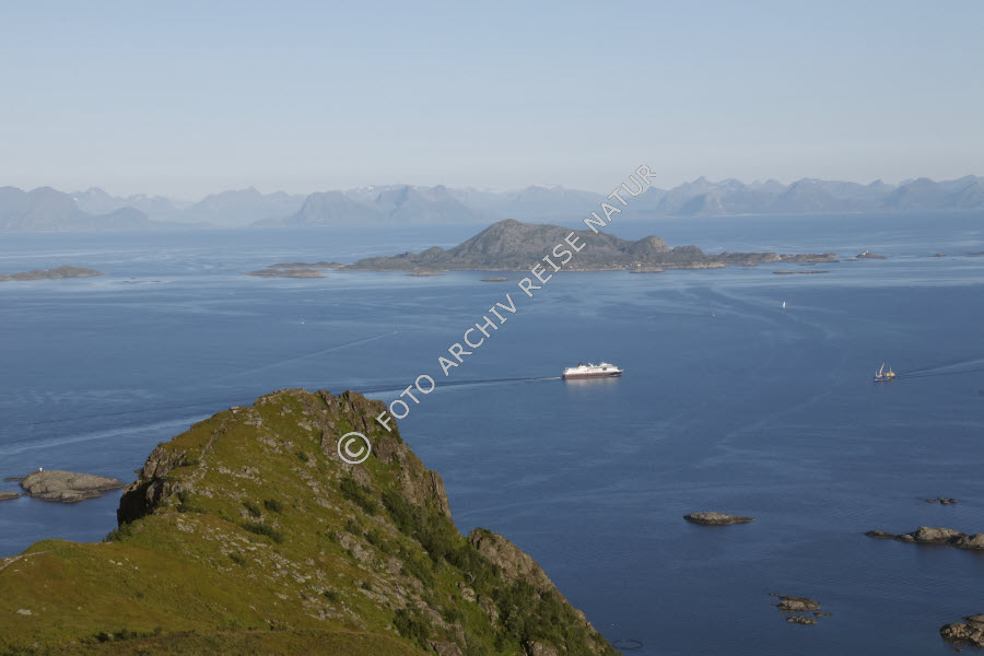 Austvågøya, Berg, Bergrücken, Felsen, Fjord, Gewässer, Insel, Landschaft, Lofoten, Material, Nordland, Norwegen, Schäre, Skrova, Stein, Svolvær, Tjeldbergtinden, Vestfjorden,