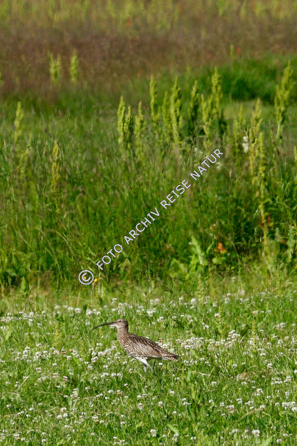 Keywords: Fauna, Flora, Gras, Großer Brachvogel, Numenius arquata, Hülsenfrüchtler, Kulturlandschaft, Lofoten, Nordland, Norwegen, Schnepfenvogel, Unnstad, Vestvågøy, Vogel, Watvogel, Weiß-Klee, Trifolium repens, Wiese,