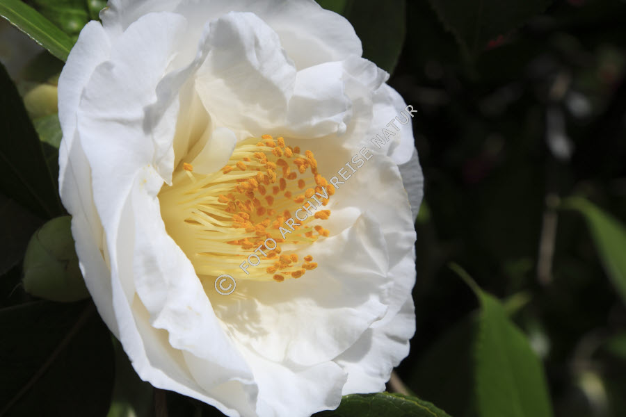 Blume, Farbe, Flora, Kamelie, Camellia japonica, Lago Maggiore, Locarno, Pflanzenteil, Schweiz, Teestrauchgewächs, Tessin, weiß,