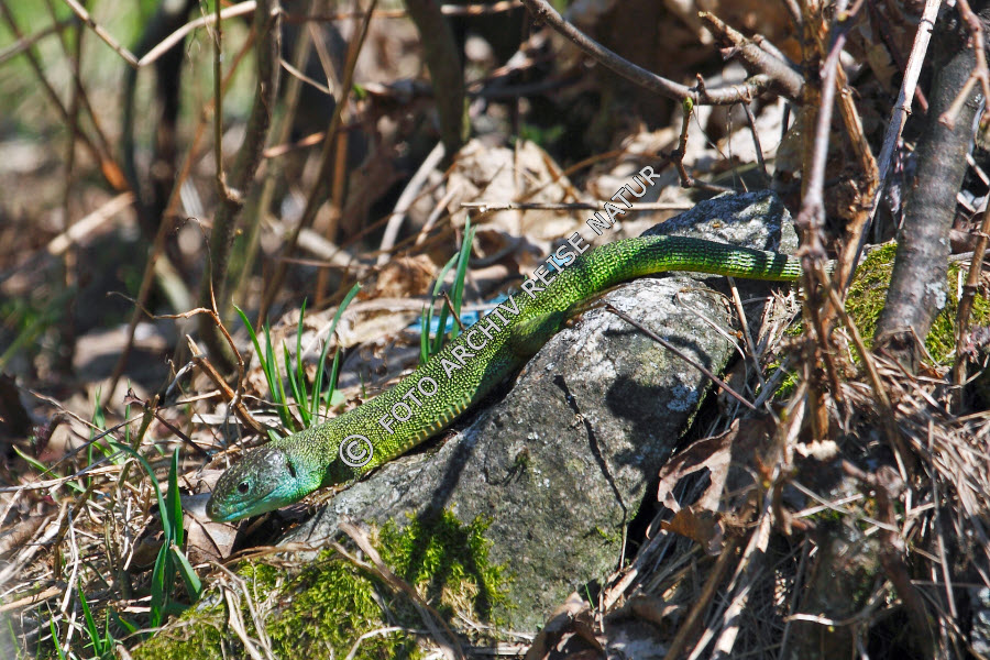 Bauwerk, Eidechse, Fauna, Granitmauer, Mauer, Natursteinmauer, Reptil, Schweiz, Smaragdeidechse, Lacerta viridis, Sonogno, Tessin, Val Redòrta, Val Verzasca,