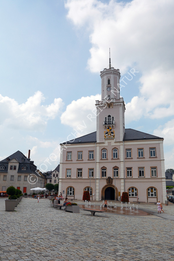 Keywords: Bauwerk, Deutschland, Gebäude, Gegenstand, Kopfsteinpflaster, Kulturlandschaft, Marktplatz, Material, Platz, Rathaus, Rathausturm, Sachsen, Schneeberg, Stadt, Stein, Turm, Turmuhr, Uhr,