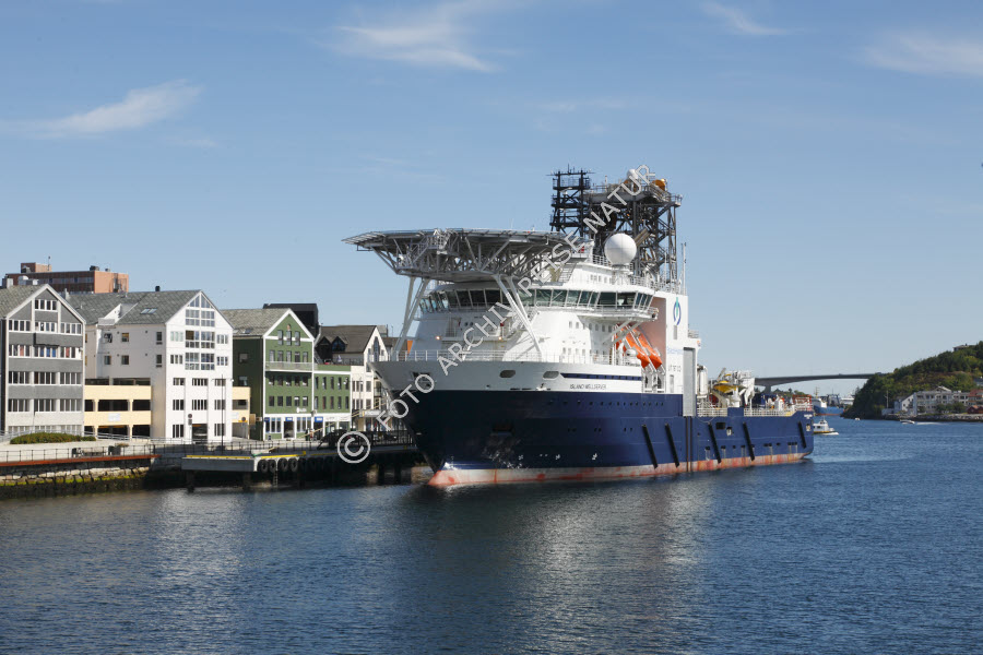 Bauwerk, Gewässer, Hafen, Hafenstadt, Kristiansund, Kulturlandschaft, Landschaft, Møre og Romsdal, Norwegen, Stadt, Sund,