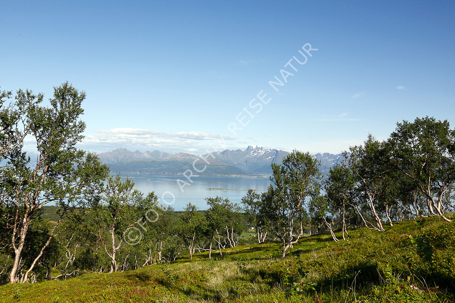 Baum, Berg, Bergkette, Birke, Betula, Birkengewächs, Fjell, Fjellbirke, Betula pubescens, Fjord, Flora, Gebirge, Gewässer, Hadselfjorden, Hadseløya, Landschaft, Nordland, Norwegen, Vesterålen, Ørnheia,
