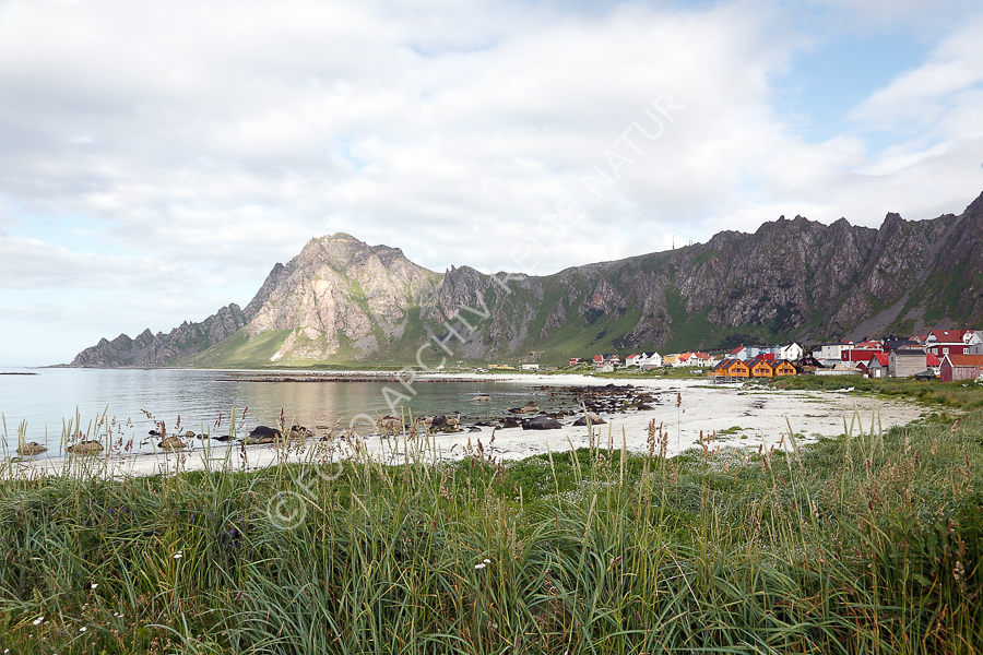 Keywords: Andøya, Berg, Bleik, Dorf, Felsen, Felswand, Fischerdorf, Flora, Gebirge, Geröll, Gewässer, Gras, Kulturlandschaft, Landschaft, Material, Meer, Nordland, Nordmeer, Norwegen, Sandstrand, Stein, Strand, Süßgras, Vesterålen,