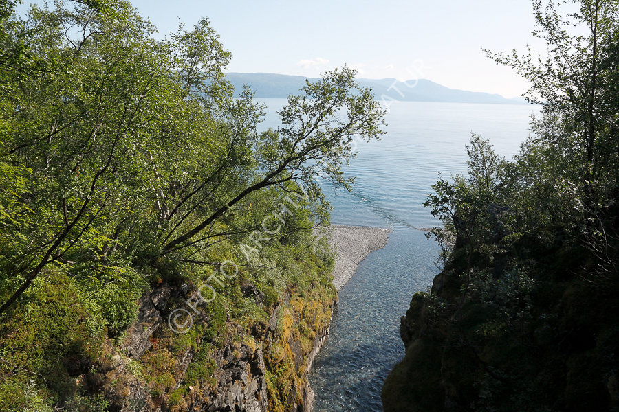Björkliden, Felsen, Fluss, Gebirge, Gewässer, Kiesstrand, Landschaft, Material, Norrbottens Län, Rakkasjokka, Schweden, See, Stein, Strand, Torneträsk, Wald,