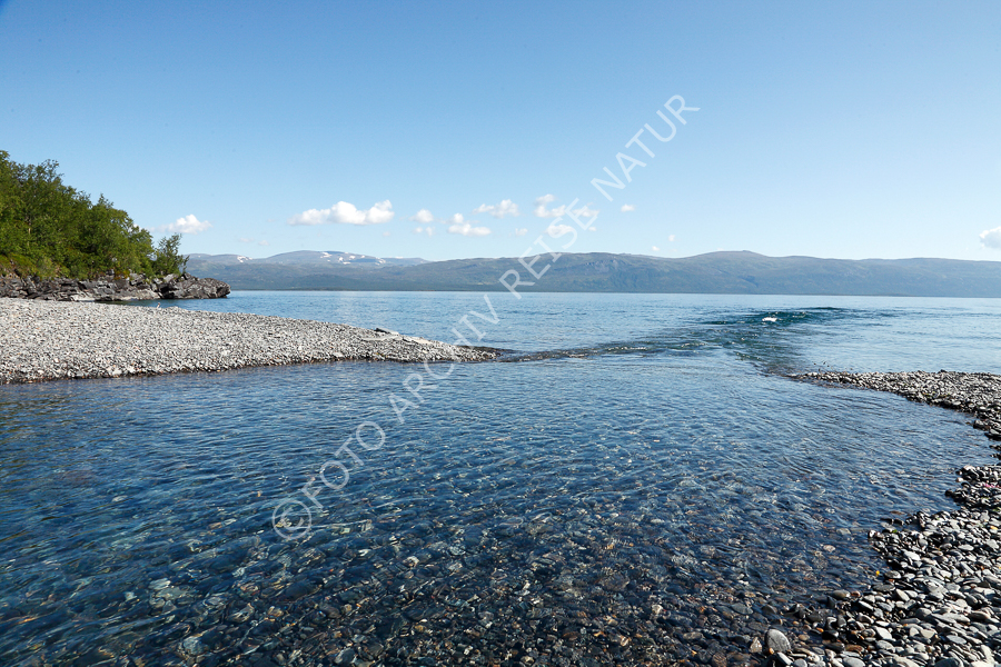 Keywords: Björkliden, Felsen, Fluss, Gebirge, Gewässer, Kiesstrand, Landschaft, Material, Norrbottens Län, Rakkasjokka, Schweden, See, Stein, Strand, Torneträsk, Wald,