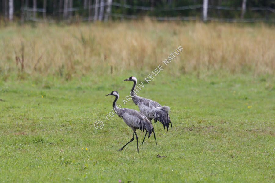 Kranichpaar auf einer Wiese bei Sollerön