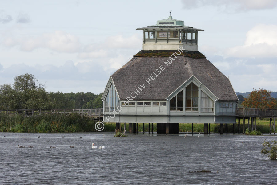 Bauwerk, Einfriedung, Flora, Fågeluddenn, Gebäude, Haus, Holzhaus, Hornborgasjön, Informationszentrum, Naturschutzgebiet, Ort, Rosengewächs, Rot, Schweden, Vogelbeere, Sorbus aucuparia, Vogelwärterhaus, Västra Götlands län, Zaun,