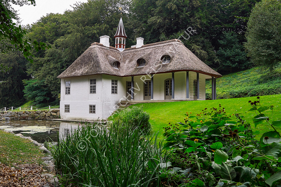 Keywords: Bauwerk, Dach, Dänemark, Garten, Gebäude, Gebäudeteil, Gewässer, Gutshaus, Herrenhaus, Insel Møn, Kulturlandschaft, Landhaus, Landschaft, Park, Rasen, Reetdach, Schloss, Schlossgarten, Seeland, Teich, Turm, Wald, Wiese,
