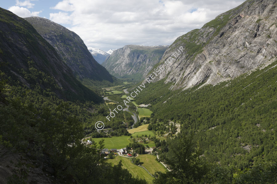 Keywords: Bach, Bauernhof, Bauwerk, Berg, Bergwald, Eikesdalen, Felsen, Felshang, Felswand, Gebirgsbach, Gebäude, Gewässer, Gipfel, Hof, Kulturlandschaft, Landschaft, Material, Møre og Romsdal, Nesset, Norwegen, Stein, Tal, Wald, Weide,