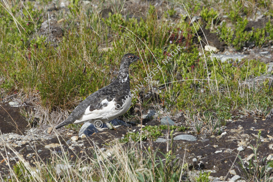 Keywords: Alpenschneehuhn, Lagopus muta, Fauna, Felsen, Flora, Geröll, Gras, Grasbüschel, Hühnervögel, Jämtland, Material, Schweden, Stein, Stekenjokk, Vogel,
