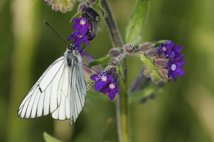 Baum-Weißling, Aporia crataegi, Farbe, Fauna, Flora, Gemeine Ochsenzunge, Anchusa officinalis, Insekt, Raublattgewächs, Schmetterling, grün, violett, weiß,