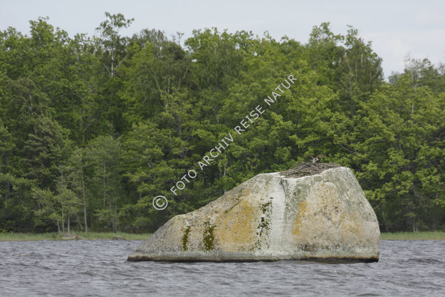 Adlerhorst, Agnäs, Fauna, Felsblock, Felsen, Fischadler, Pandion haliaetus, Greifvögel, Material, Naturschutzgebiet, Nest, Ort, Schweden, Småland, Stein, Tierbau, Vogel,