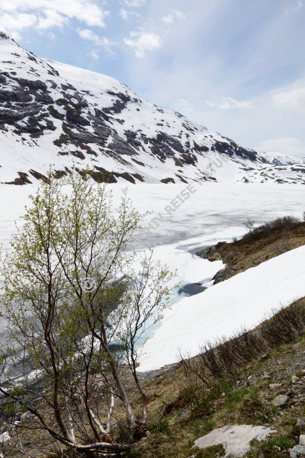 Eis bedeckter Bergsee im Gaularfjellet