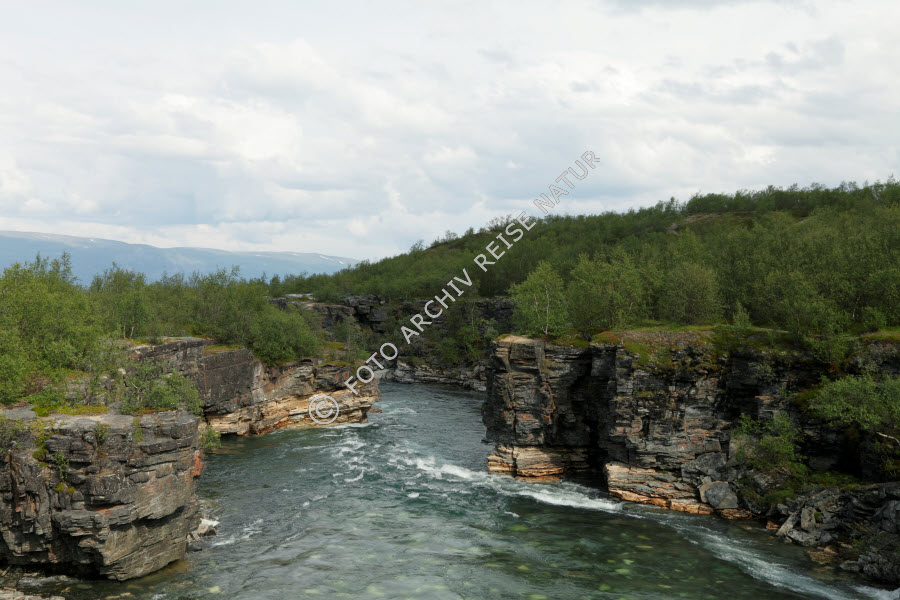 Keywords: Abisko, Abiskojåkka, Birkenwald, Canyon, Felsen, Felshang, Felswand, Fluss, Gewässer, Landschaft, Laubwald, Material, Nationalpark, Ort, Schlucht, Stein, Wald,