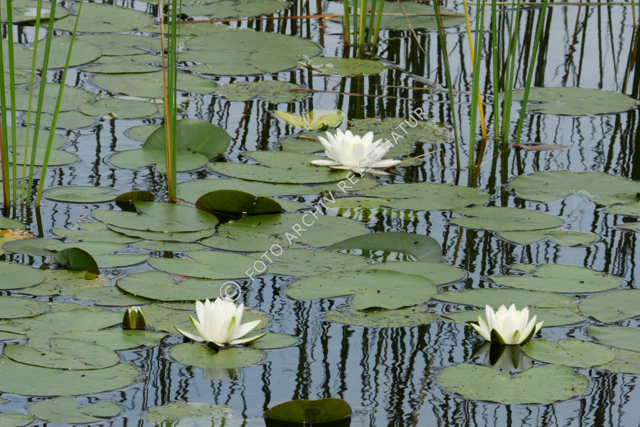 Keywords: Farbe, Flora, Gewässer, Gras, Landschaft, Schilfrohr , Phragmites australis, See, Seerosengewächs, Süßgras, Weiße Seerose, Nymphaea alba, blau, grün, weiß, Åsnen,