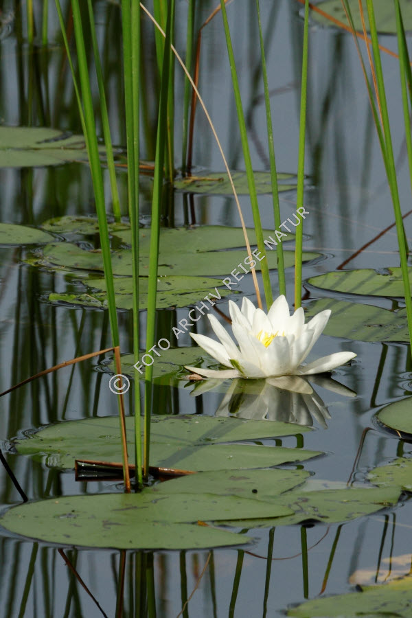 Farbe, Flora, Gewässer, Gras, Landschaft, Schilfrohr , Phragmites australis, See, Seerosengewächs, Süßgras, Weiße Seerose, Nymphaea alba, blau, grün, weiß, Åsnen,