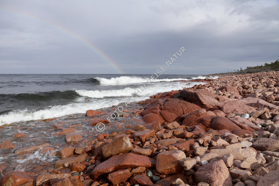 Bottnischer Meerbusen, Brandungsgeröll, Ereignis, Felsen, Geröll, Gewässer, Landschaft, Material, Meer, Naturereignis, Regenbogen, Stein,