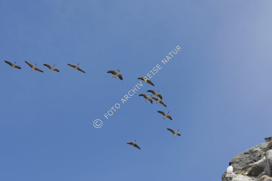 Keywords: Barentssee, Entenvögel, Fauna, Felsen, Finnmark, Formation, Gewässer, Graugans, Anser anser, Gruppe, Hornøya, Insel, Landschaft, Lappland, Material, Meer, Norwegen, Schwarm, Stein, Tiergruppe, Varanger, Vardø, Vogel, Vogelfelsen, Vogelflug, Vogelinsel, Vogelschwarm,