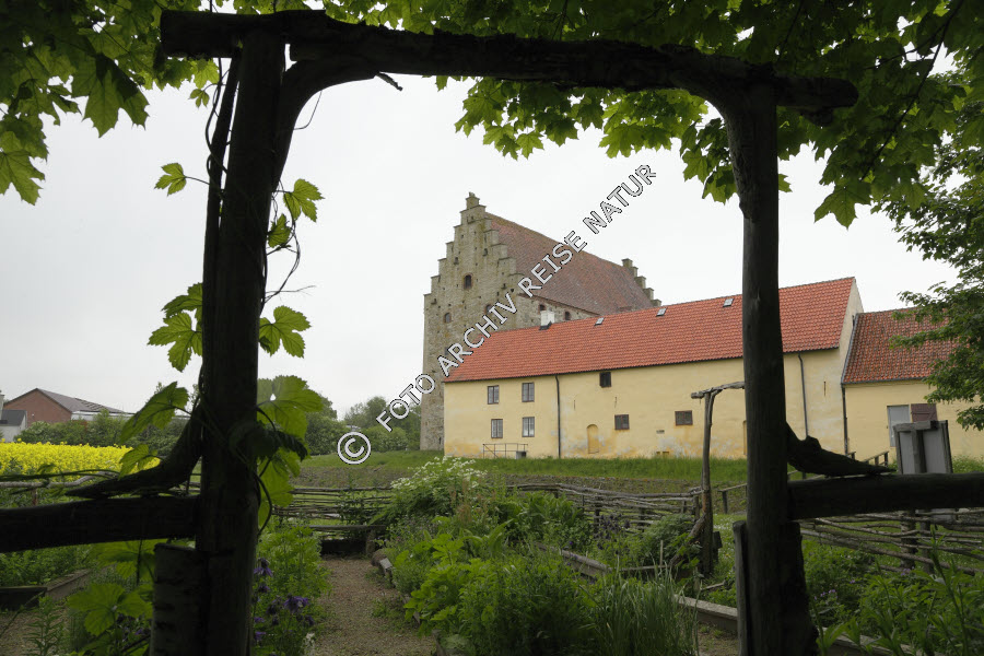 Bauwerk, Blumengarten, Burg, Dach, Garten, Gebäude, Gebäudeteil, Giebel, Glimminge, Haus, Kultur, Kulturlandschaft, Lagerhaus, Mauer, Mittelalter, Natursteinmauer, Schlossgarten, Schweden, Skåne, Speicher, Staffelgiebel, Wirtschaftsgebäude, Zeit, historisch,
