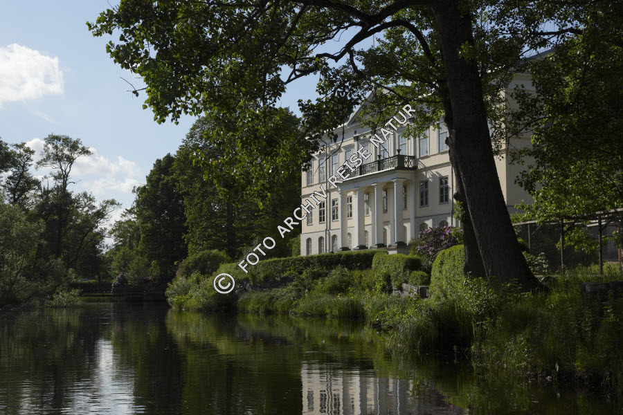 Baum, Baumstamm, Bauwerk, Flora, Gebäude, Gewässer, Grau-Pappel, Populus × canescens, Gutshaus, Herrenhaus, Landschaft, Teich, Weidengewächs,