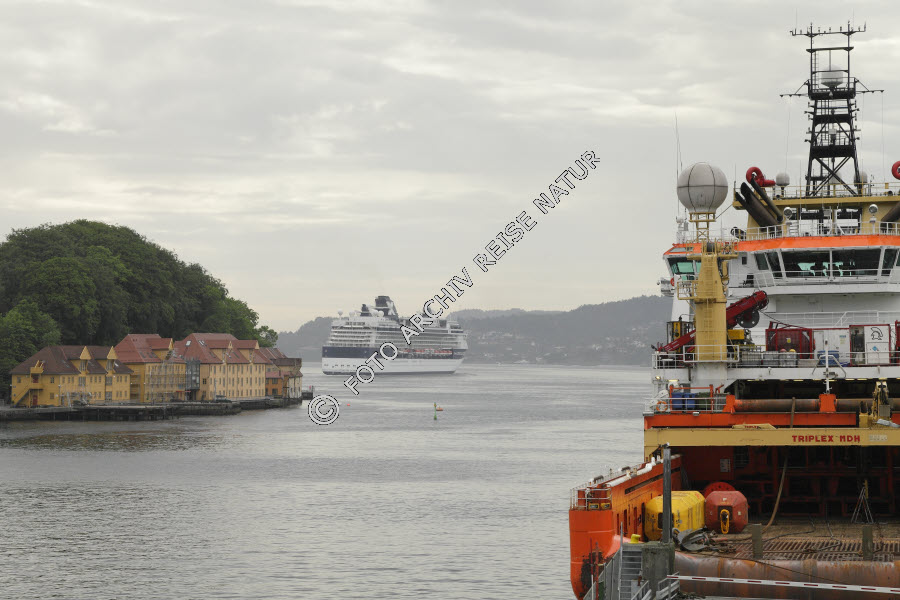 Keywords: Bauwerk, Bergen, Boot, Bryggen, Fahrzeug, Fischerboot, Fischtrawler, Gebäude, Hafen, Hafenausfahrt, Haus, Hordaland, Kreuzfahrtschiff, Lagerhaus, Norwegen, Schiff, Speicher, Verkehrsmittel, Wasserfahrzeug,