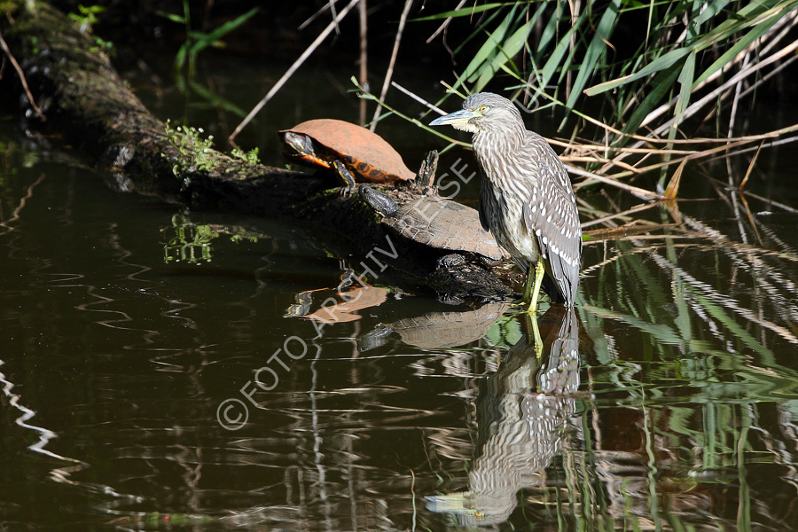 Junger Nachtreiher und Europäische Sumpfschildkröte
