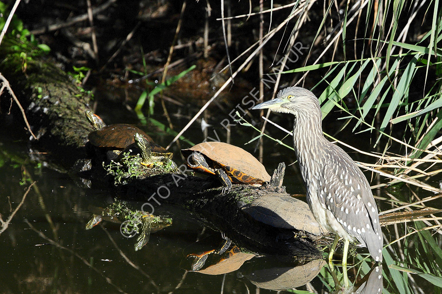 Junger Nachtreiher und Europäische Sumpfschildkröte