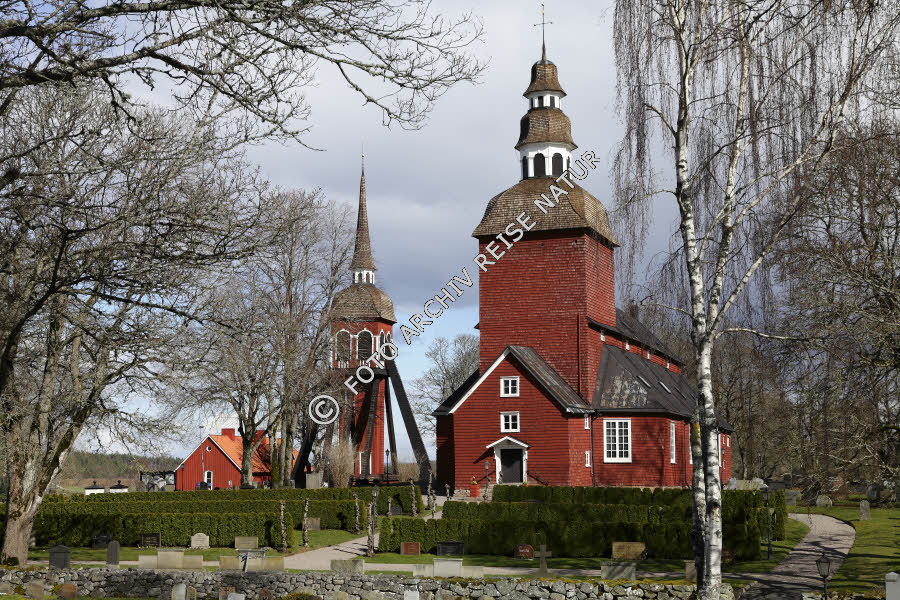 Die in Form einer Basilika errichtete Holzkirche von Habo mit freistehendem Glockenturm2014_04_11_7432_5II