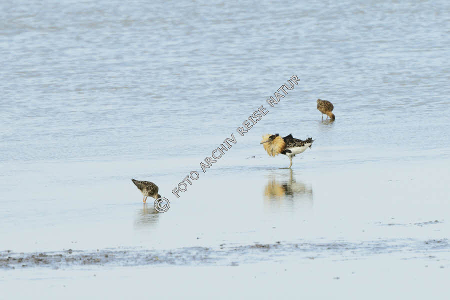 Kampfläufer im Flachwasser des Strandsees am Grünen Brink