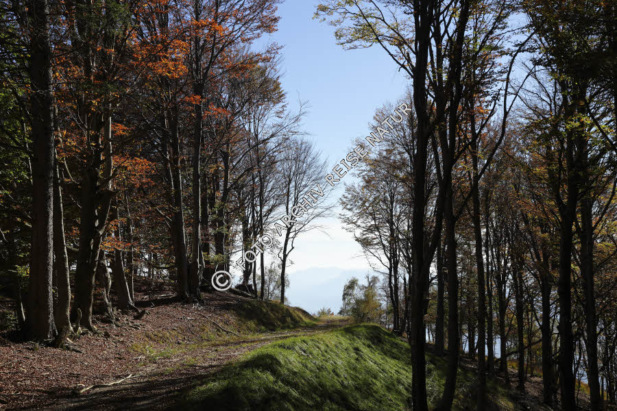 Baum, Baumstamm, Bauwerk, Berg, Berghang, Buche, Fagus, Buchengewächs, Buchenwald, Farbe, Flora, Forstweg, Landschaft, Laubwald, Verkehrsweg, Wald, Wanderweg, Weg, bunt,