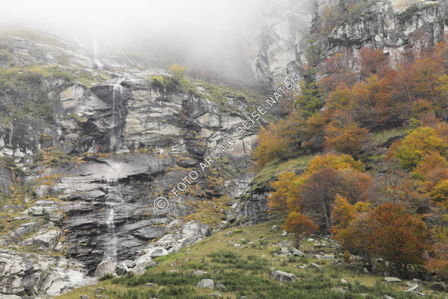 Bunter Herbstwald im oberen Verzascatal bei Sonogno