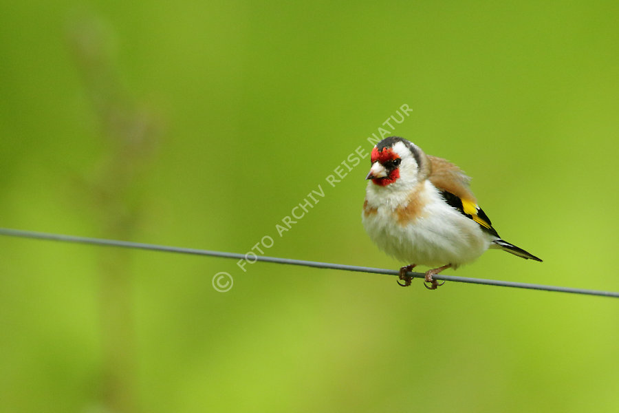 Keywords: Bauwerk, Drahtzaun, Einfriedung, Fauna, Finken, Naturschutzgebiet, Ort, Ottenby, Schweden, Stieglitz, Carduelis carduelis, Vogel, Zaun, Öland,