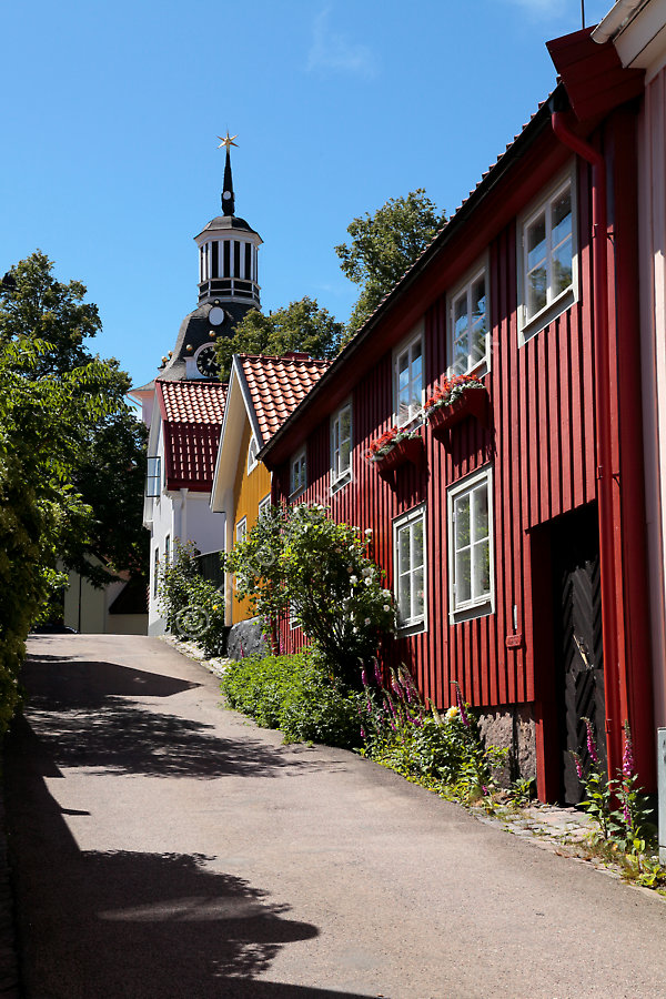 Altstadtgasse in Västervik mit schmucken Holzhäusern