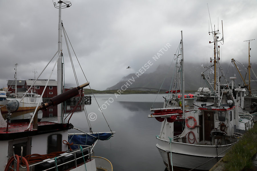 Fischerboote im Hafen von Fredvang