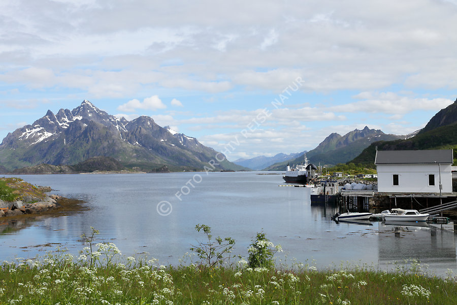 Keywords: Digermulen, Dorf, Fischerdorf, Gewässer, Hinnøya, Kulturlandschaft, Landschaft, Lofoten, Nordland, Norwegen, Raftsundet, Sund, Süd-Hinnøy, Weiler,