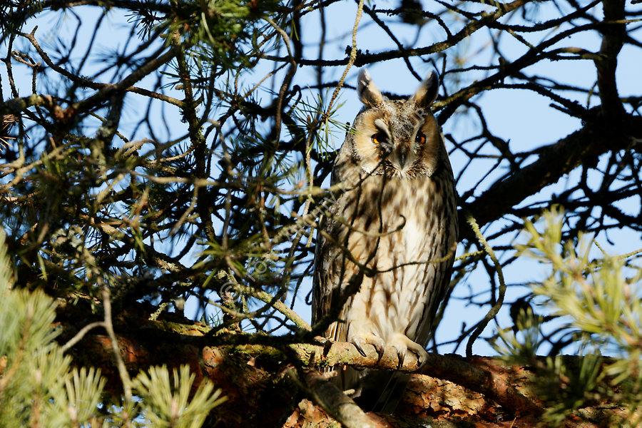 Keywords: Baden-Württemberg, Baum, Deutschland, Eulen, Fauna, Flora, Kiefer, Pinus, Kieferngewächs, Schwarzwald, Villingen, Vogel, Waldohreule, Asio otus,