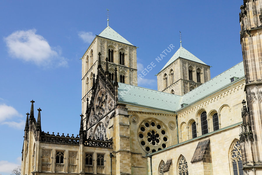 Keywords: Baustil, Bauwerk, Bleiglasfenster, Deutschland, Dom, Fenster, Fensterrose, Gebäude, Gebäudeteil, Gotik, Kathedrale, Kirche, Kirchturm, Münster, Nordrhein-Westfalen, Rosette, Sakralbau, Spätgotik, Turm,