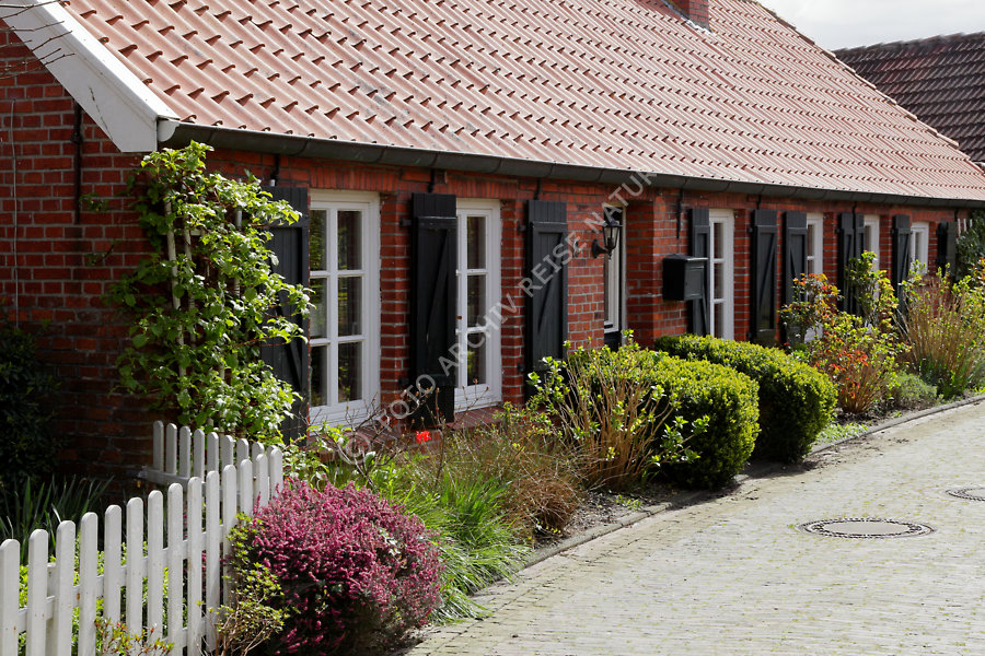 Typisches Backsteinhaus in der Dorfstraße von Rysum